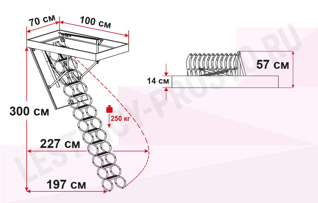 Лестница чердачная, раздвижная, ножничного типа.