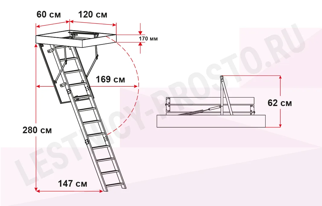 Чердачная лестница с люком OMAN POLAR 60х120 см, h-280 см