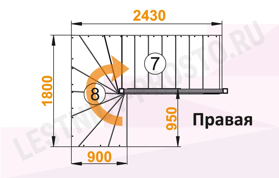 Схема лестницы К-003М/5 с поворотом направо