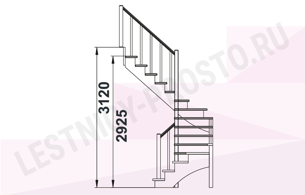 Ступени и поручень изготовлены из дуба, остальные элементы из сосны. Возможно изготовление данной модели полностью из дуба.