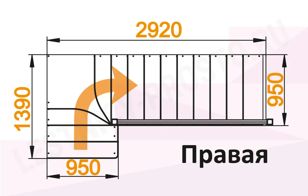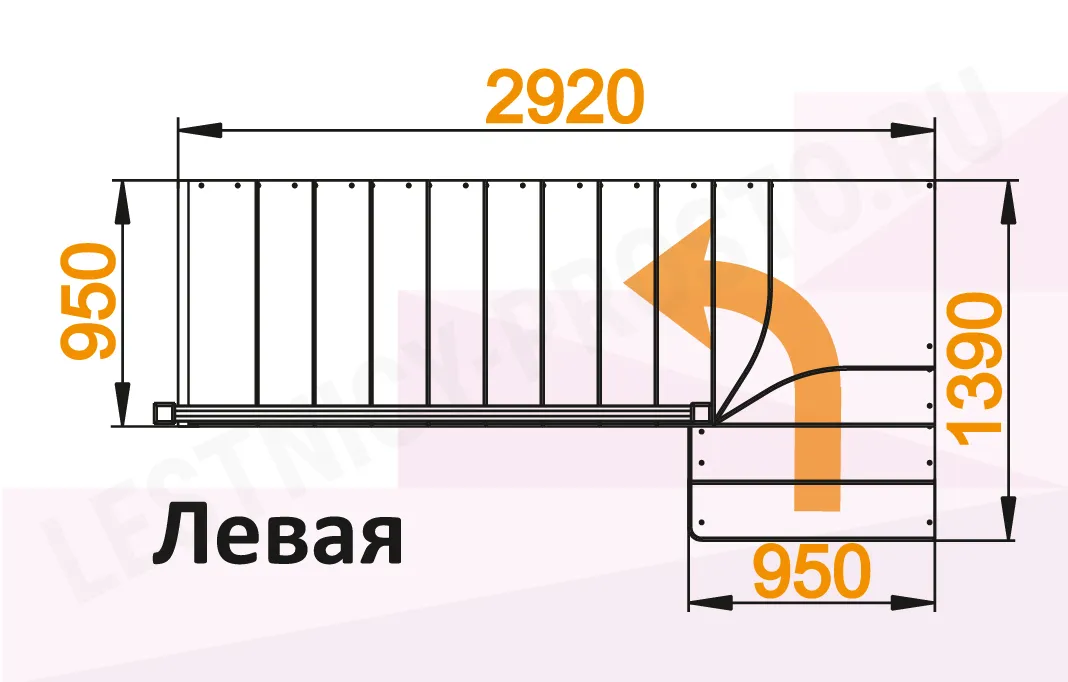 Схема лестницы К-031М с поворотом налево