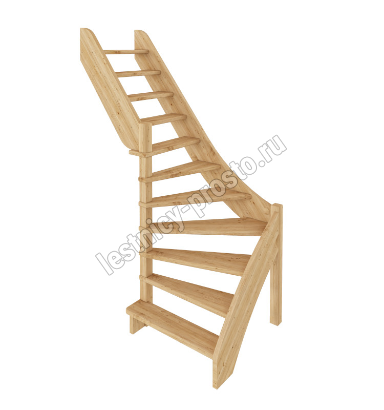 Базовый комплект включает в себя деревянные элементы лестницы без какого-либо покрытия.