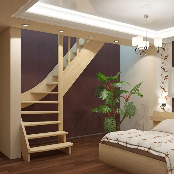 Ступени и поручень лестницы изготовлены из ясеня, остальные элементы из сосны.