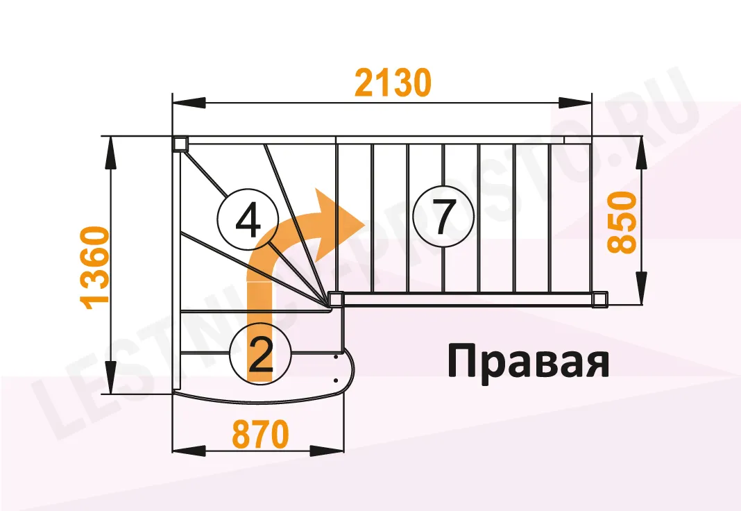 Схема лестницы ЛС-07М/4 с поворотом направо