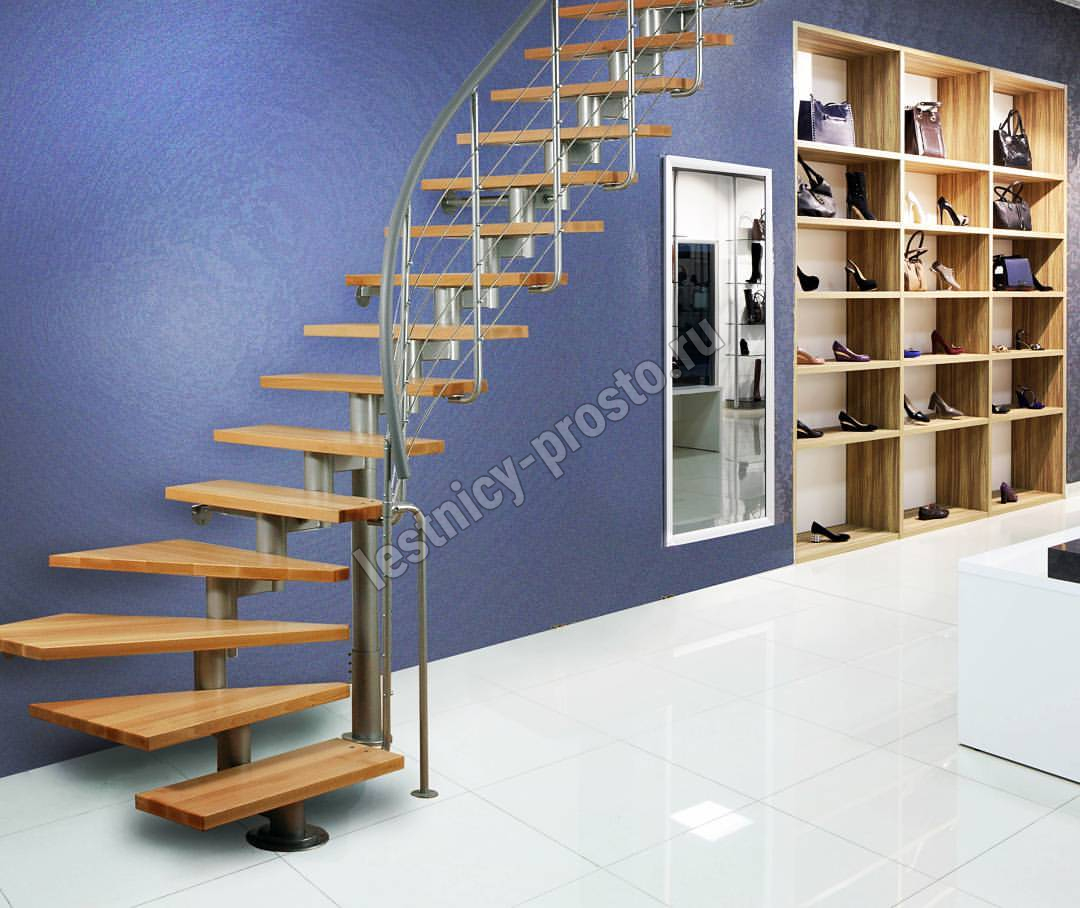 Модульная лестница DIXI PLUS серебро, светлая ольха
