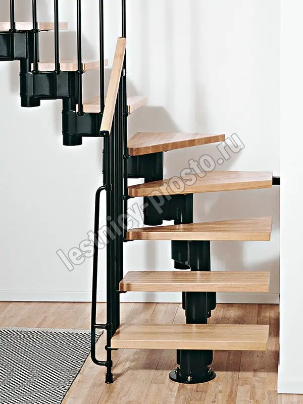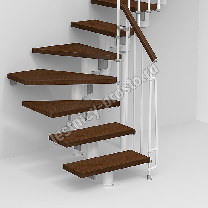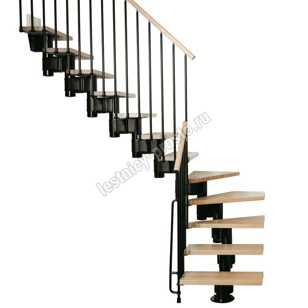 Красивая комфортная лестница с уникальной модульной конструкцией, которая позволяет собрать большое число модификаций, подходящих под ваш проём и другие условия помещения. Возможные варианты сборки лестницы смотрите в блоке "чертежи и схемы". При монтаже модульной лестницы KOMPACT, вы можете варьировать высоту шага и проступь, получив точную необходимую высоту и габариты. Ступени выполнены из массива бука и покрыты качественным износостойким лаком. Базовая комплектация позволяет получить лестницу под высоты этажа в диапазоне 2250 - 3030 мм, кроме того, установив дополнительный комплект увеличения высоты, можно поднять высоту лестницы до 3730 мм. Каркас и стойки ограждения выполнены из пластифицированного металла.