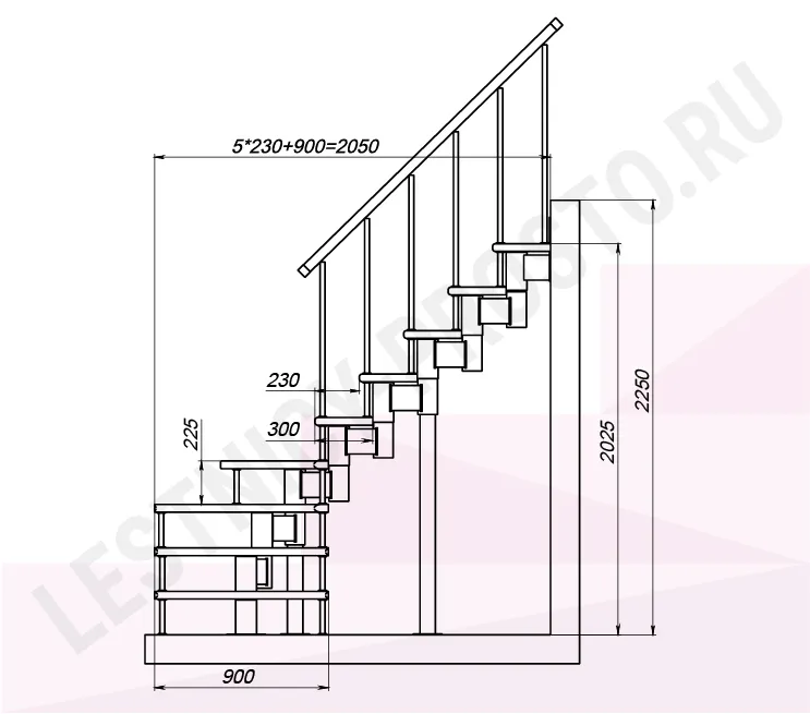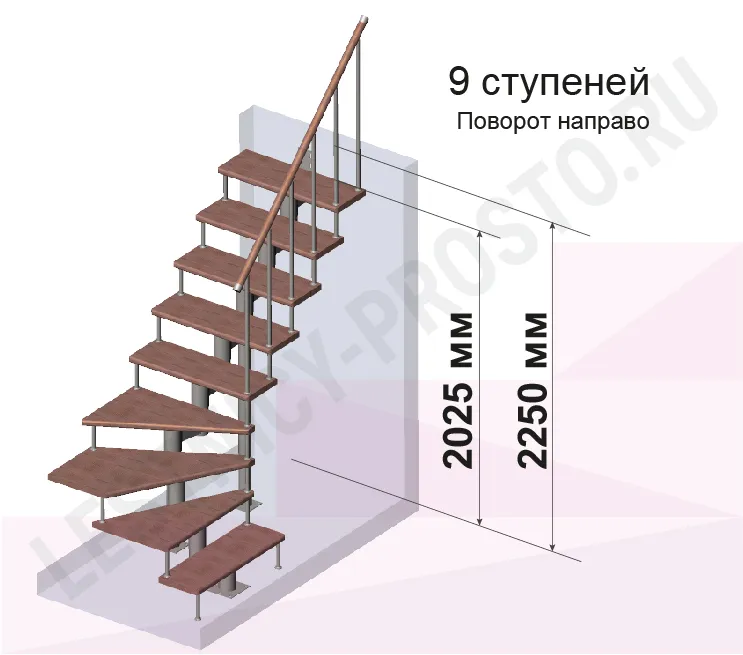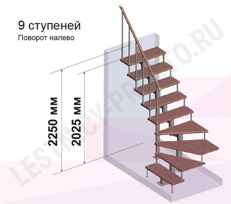 Высота лестницы 2025 - 2250 (9 ступеней) мм