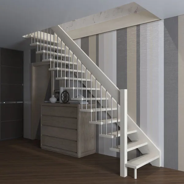 Каркас лестницы представляет собой набор модулей, которые комплектуются уже готовыми к монтажу.