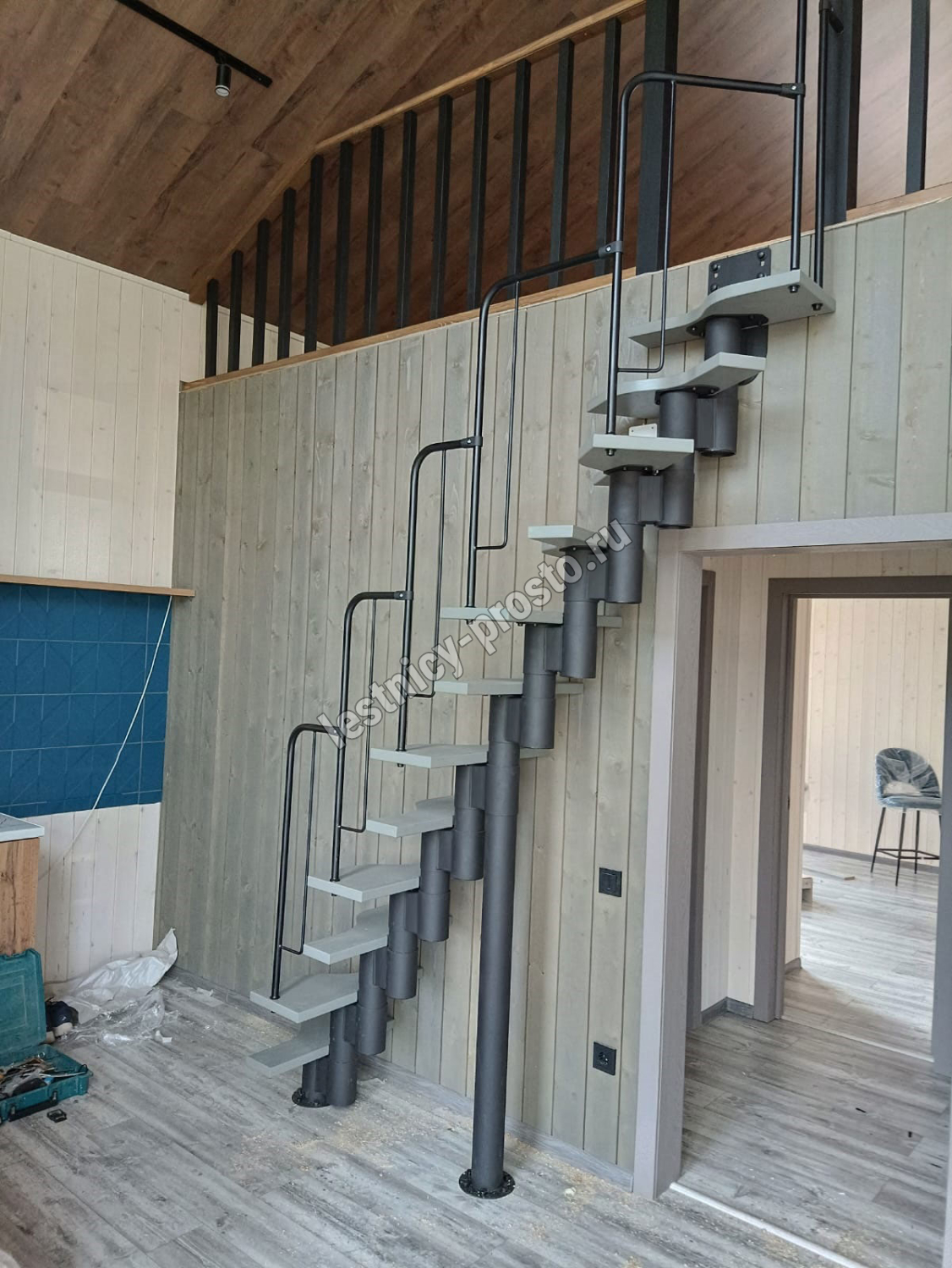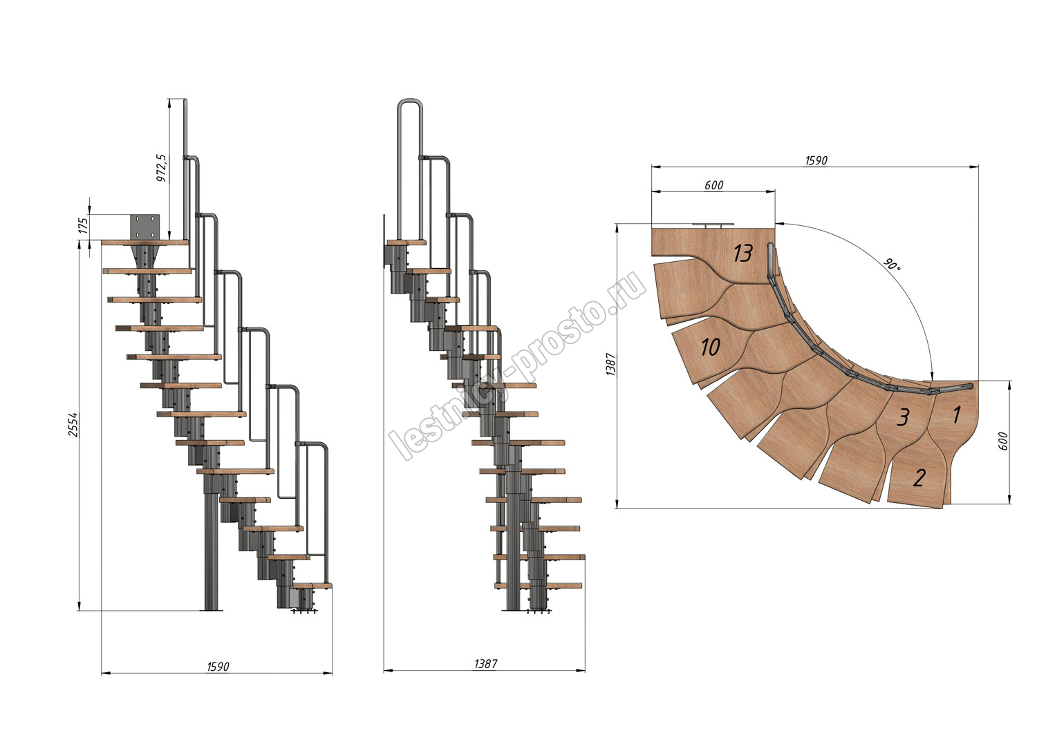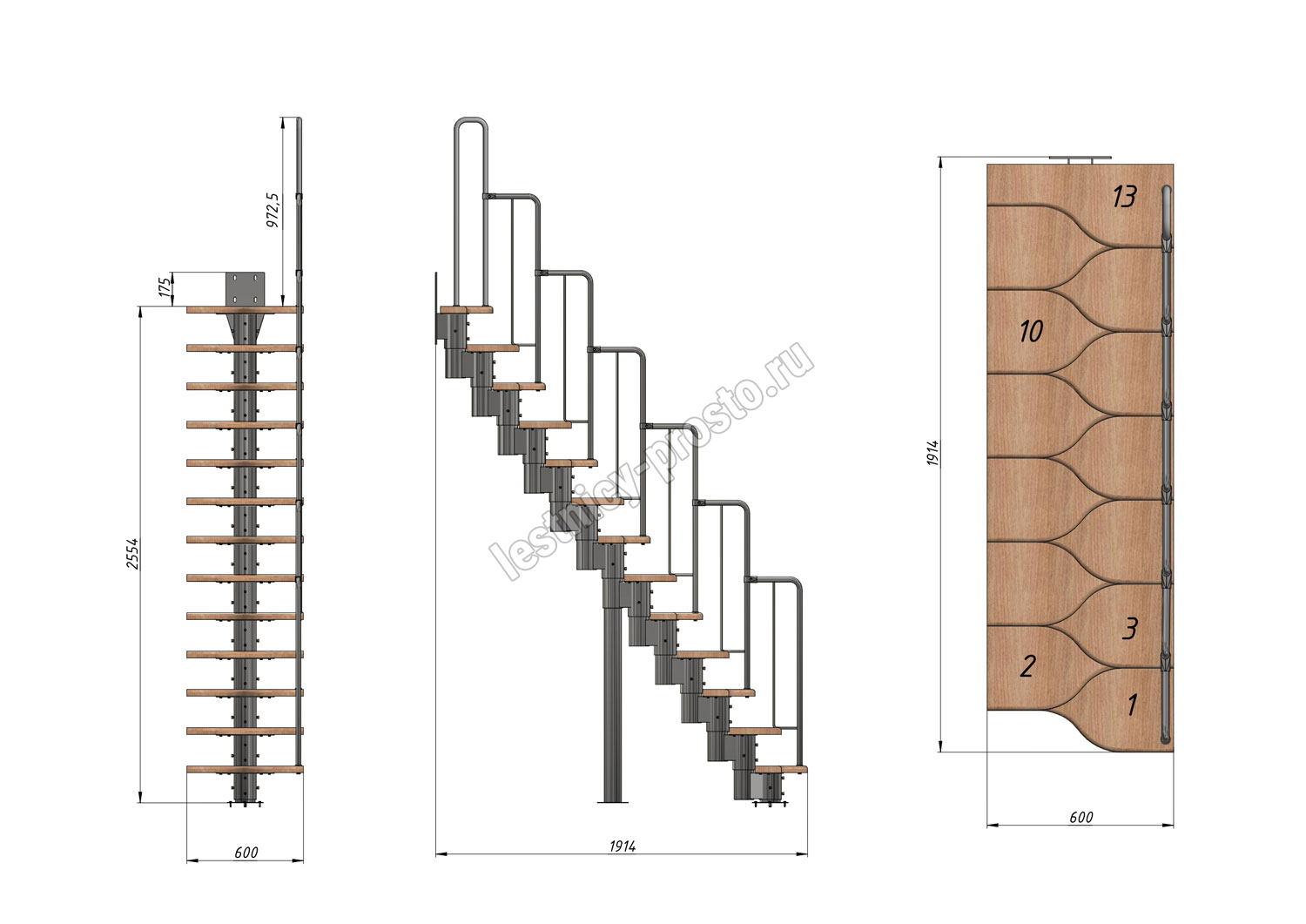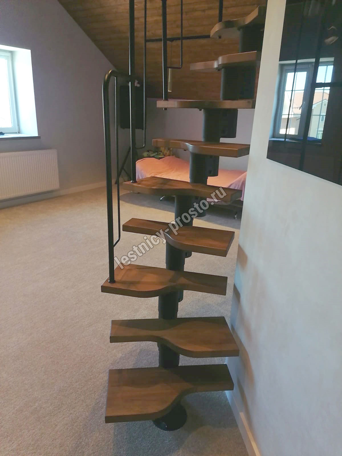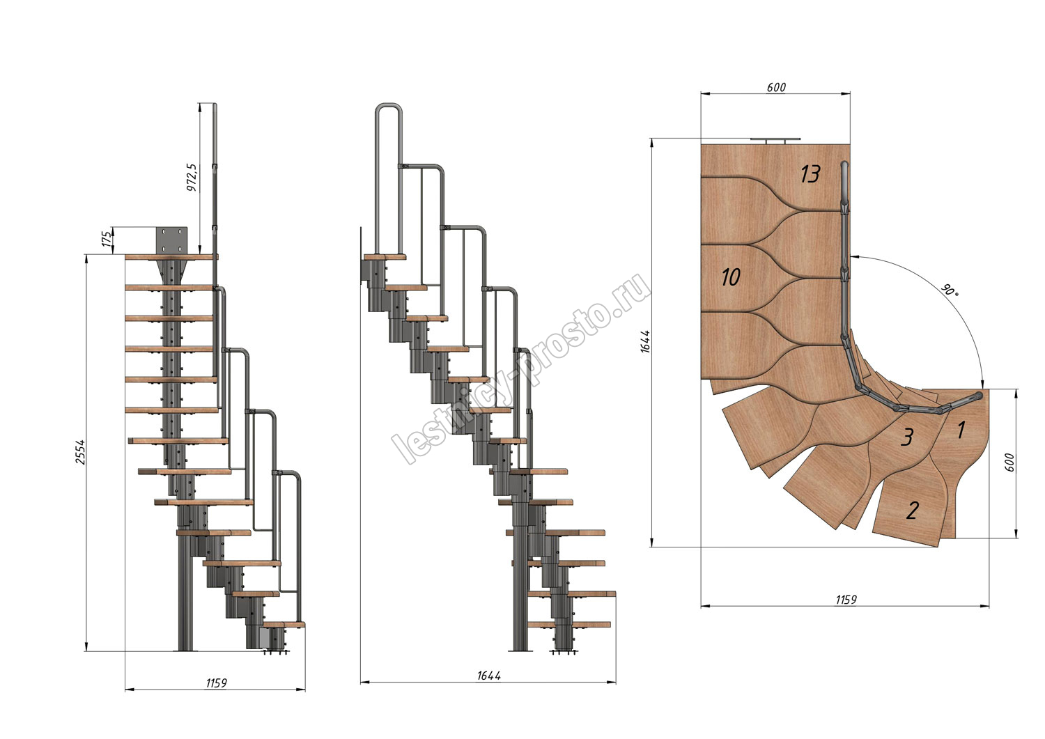 Лестница Prosto Urban Black гусиный шаг 600 мм, h234-336 см (13 ступеней), бук