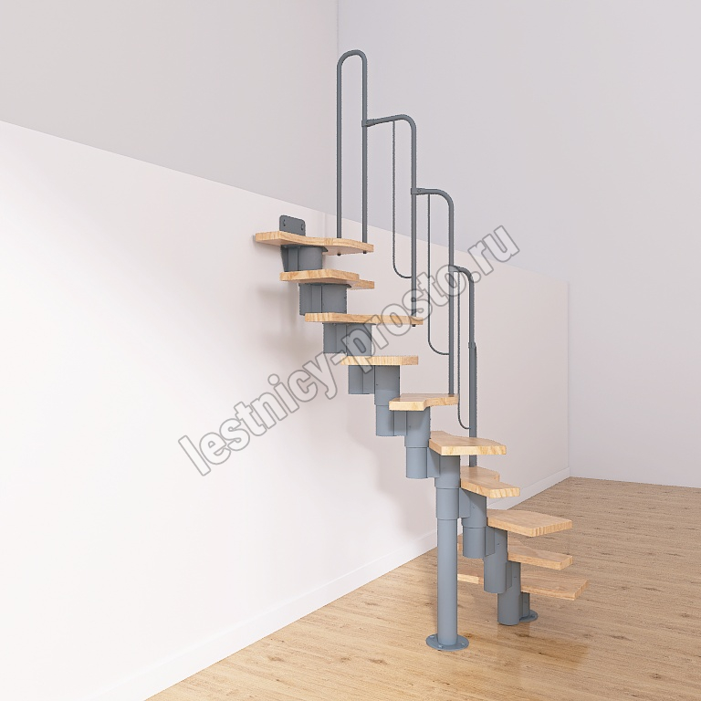 Лестница Prosto Urban Grey г-образная гусиный шаг 600 мм, h180-264 см (10 ступеней)