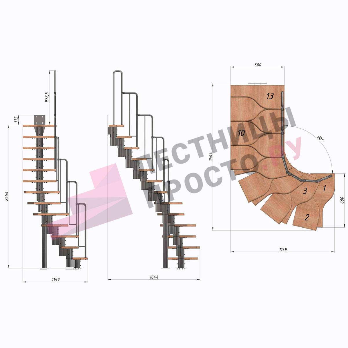 Лестница Prosto Urban Grey г-образная гусиный шаг 600 мм/ Ступени из берёзы мультиплекс