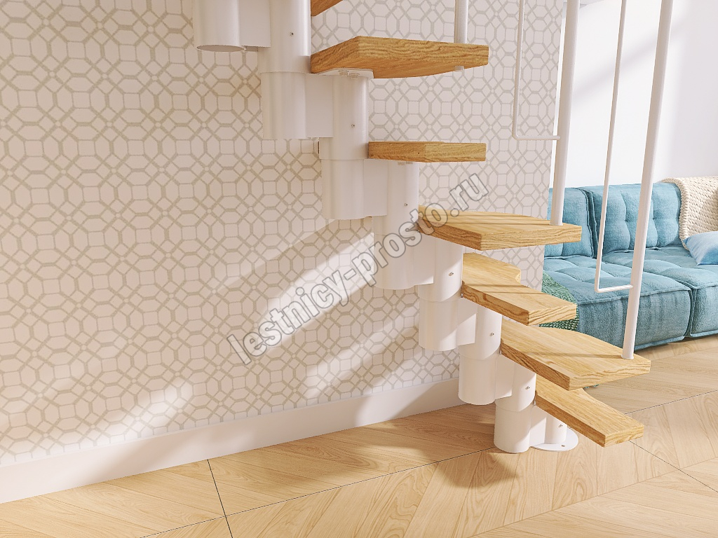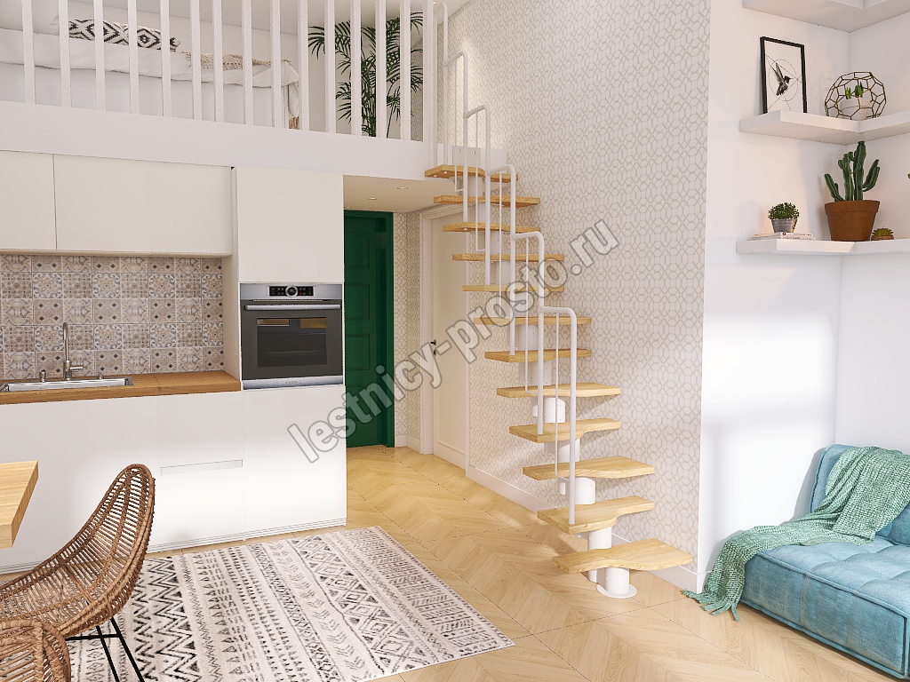 Лестница Prosto Urban White гусиный шаг 600 мм, h180-264 см (10 ступеней), берёза мультиплекс