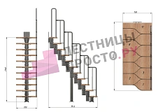 Лестница Prosto Urban White гусиный шаг 700 мм, h198-288 см (11 ступеней), бук