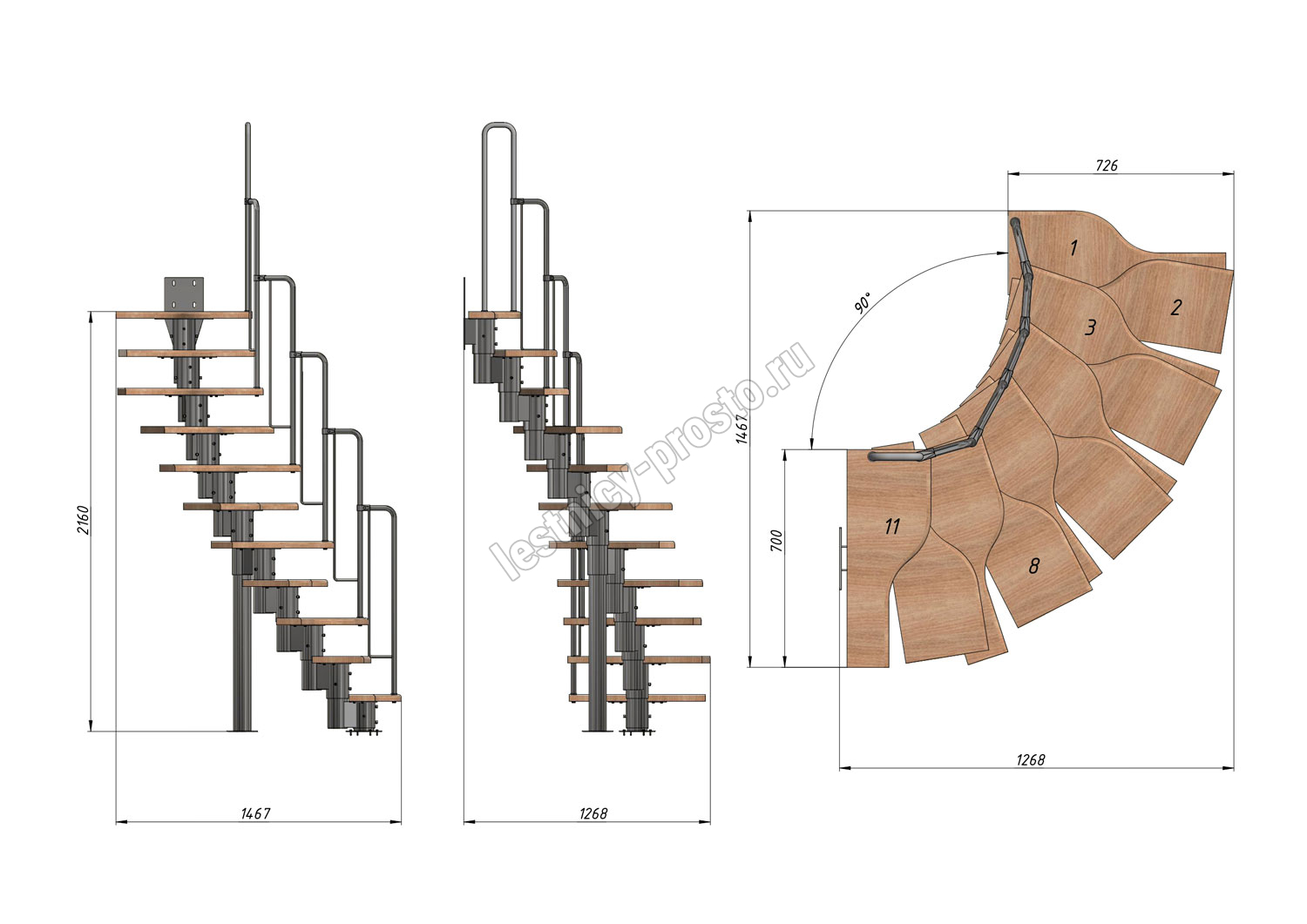 Высота лестницы 1980 - 2880 (11 ступеней) мм