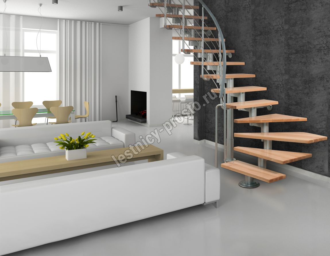 Модульная лестница DIXI PLUS серебро, светлый дуб