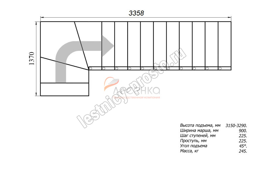 Модульная лестница Фаворит 225 3150-3290, Белый, Сосна, Нержавеющая сталь