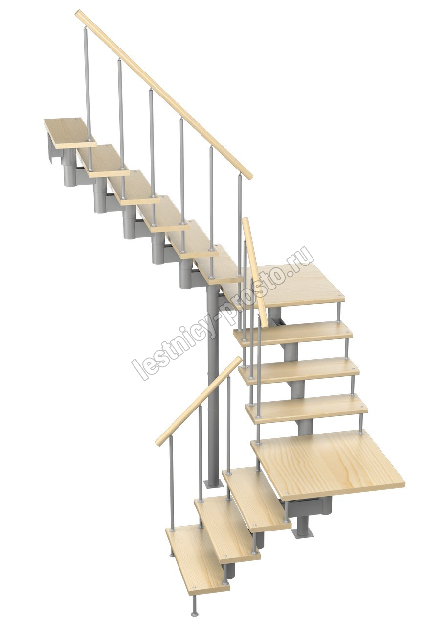 Модульная лестница Комфорт 225 3150-3290, Серый, Бук, Нержавеющая сталь