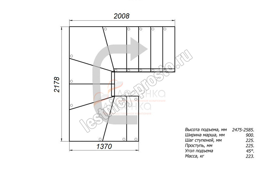 Модульная лестница Спринт 225 2475-2585, Черный, Сосна, Нержавеющая сталь