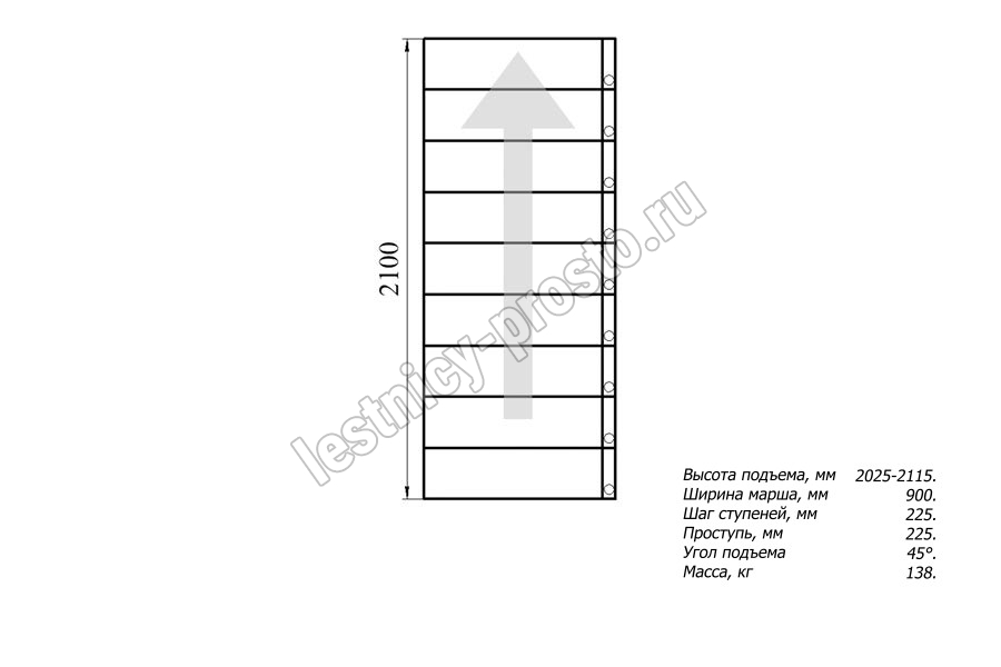Модульная лестница Стандарт 2025-2115, Серый, Сосна, Нержавеющая сталь