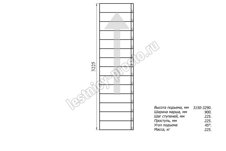 Модульная лестница Стандарт 3150-3290, Серый, Сосна, Крашеная, Без Ступений