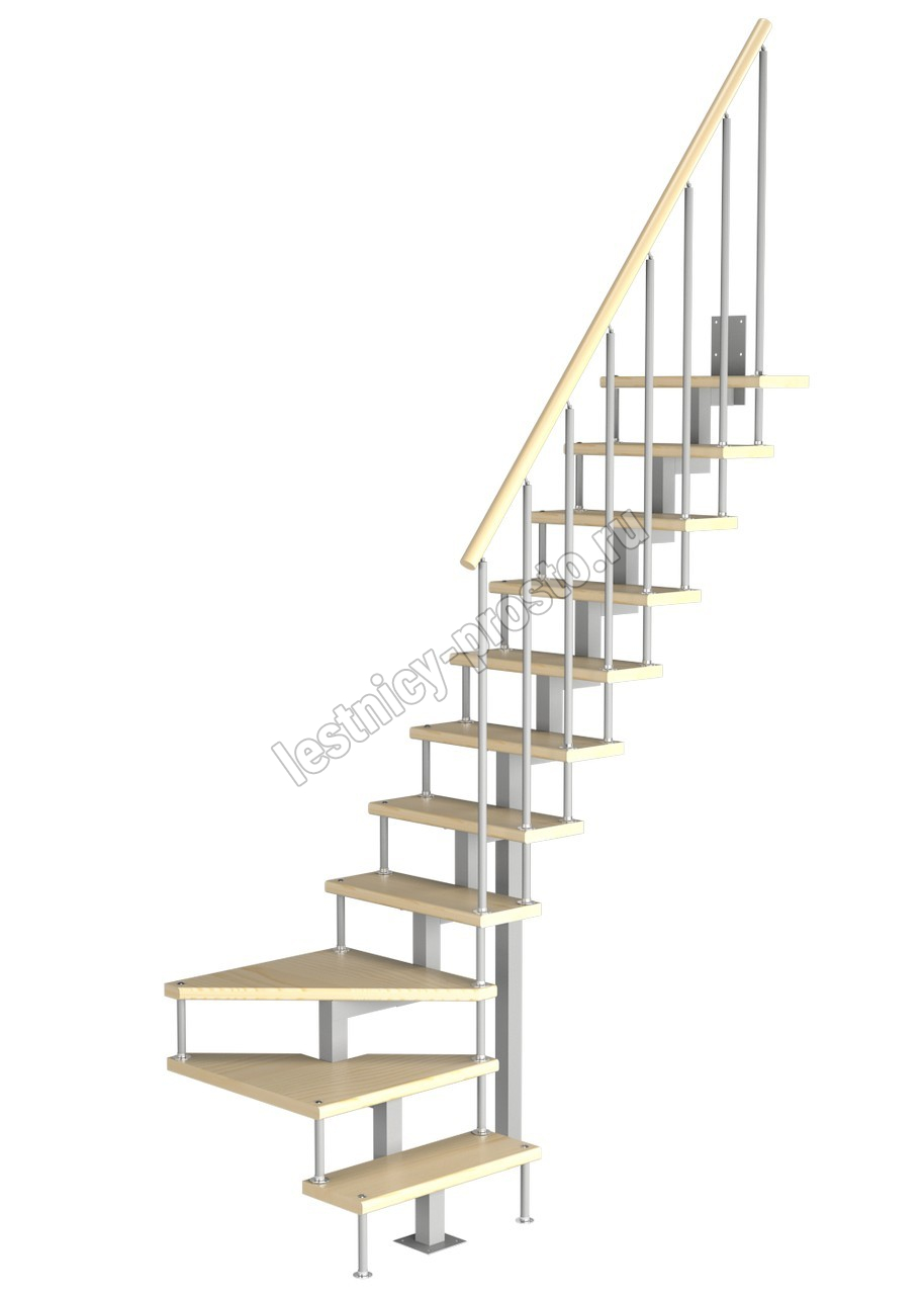 Модульная малогабаритная лестница Компакт 2475-2700, Серый, Сосна, Крашеная