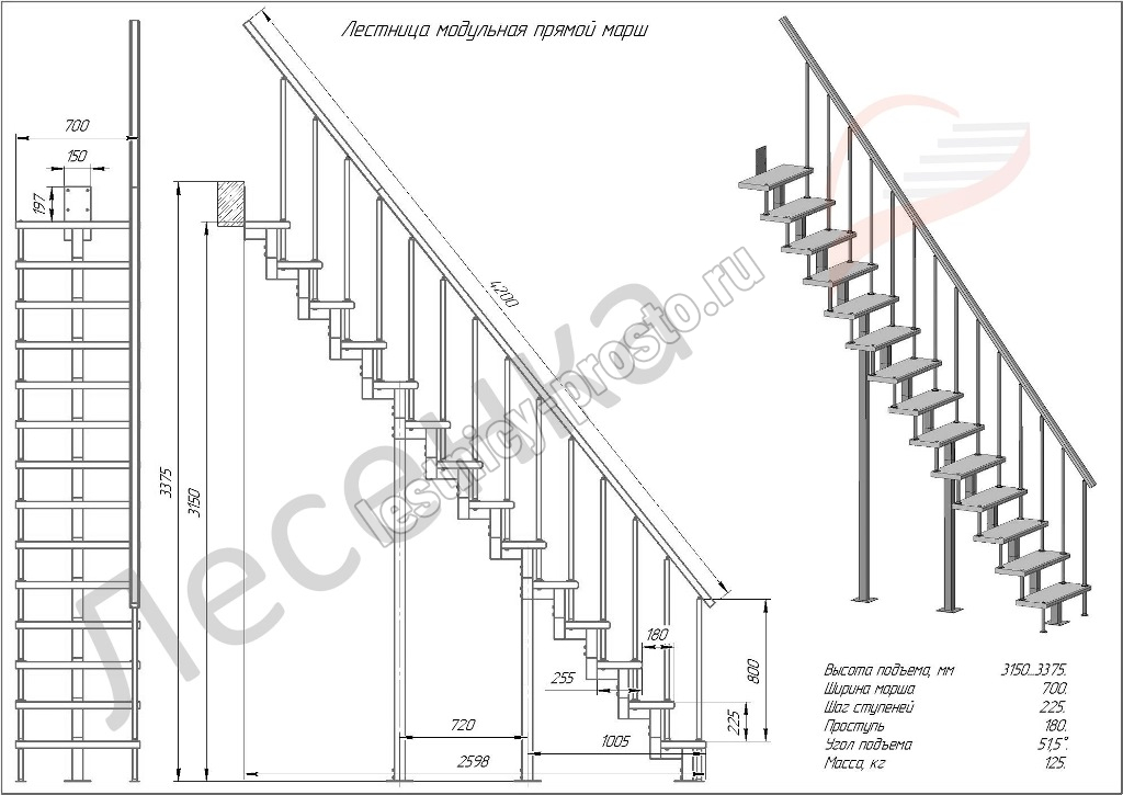 Высота лестницы 3150 - 3375 мм