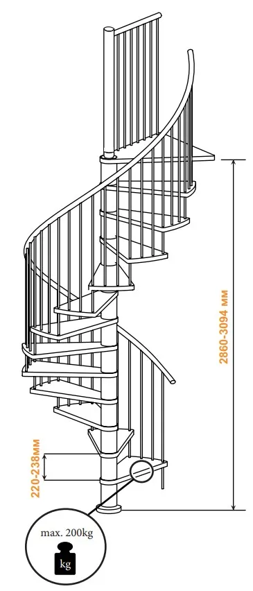Высота лестницы 2860 - 3090 мм