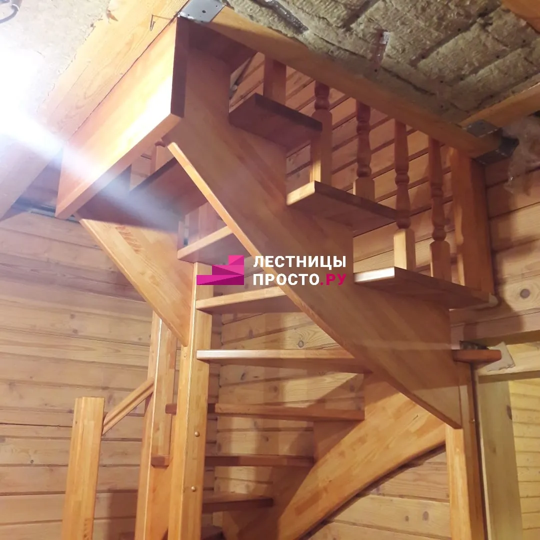 Лестница на второй этаж из лиственницы по индивидуальному проекту LP-000468